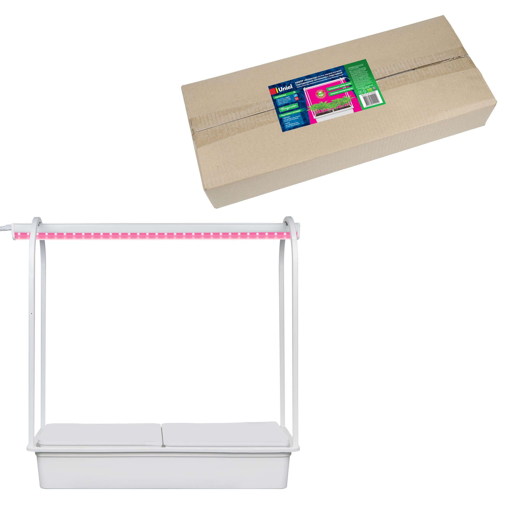 ULT-P54-10W/SPSB IP20 WHITE Набор «Минисад», светильник для растений светодиодный с подставкой. Спектр для рассады и цветения. TM Uniel